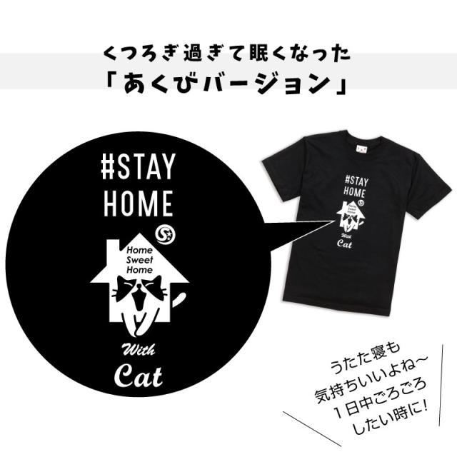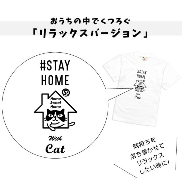 Tシャツ メンズ レディース 半袖 猫 STAYHOME ブラック ホワイト ネコ ねこ 猫柄 雑貨 - メール便 - SCOPY スコーピー