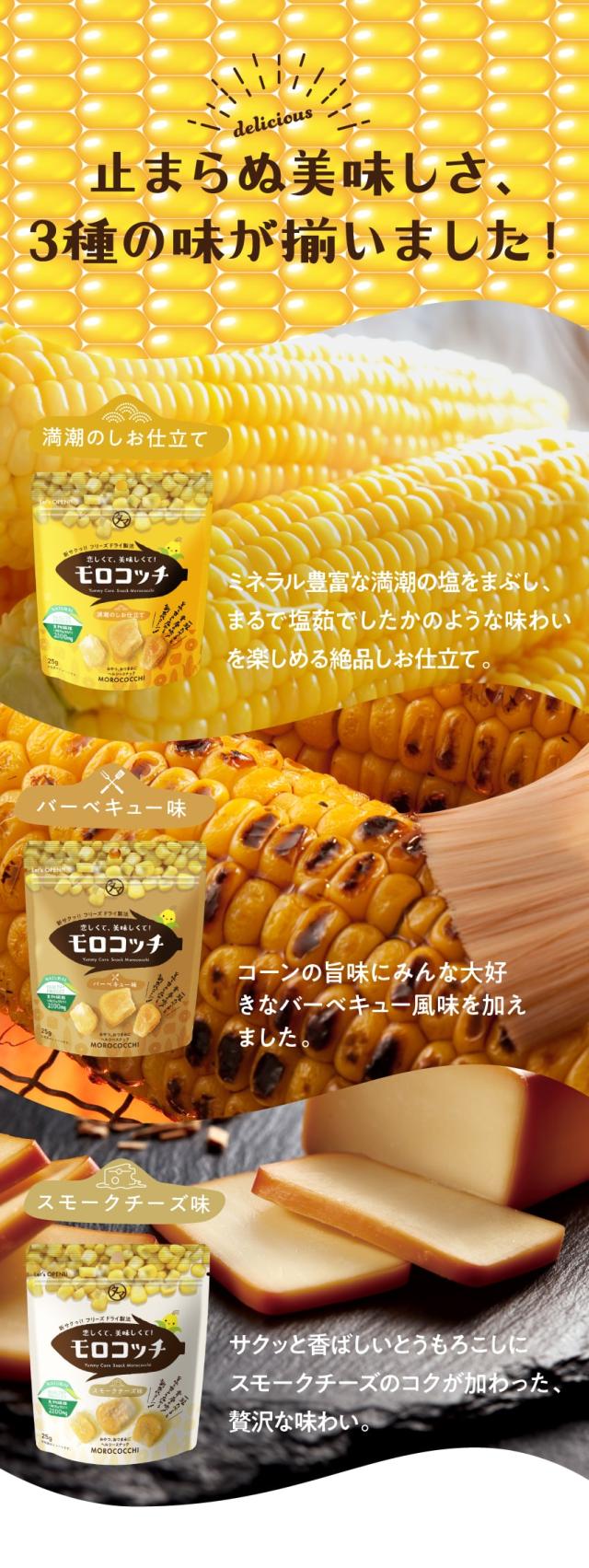 新食感!モロコッチおすすめ3袋セット(塩・BBQ・チーズ)各25g とうもろこし トウモロコシ コーン スナック ポッキリ おやつ おつまみ フリーズドライ ヘルシー サステナブル 送料無料 share_gourmet