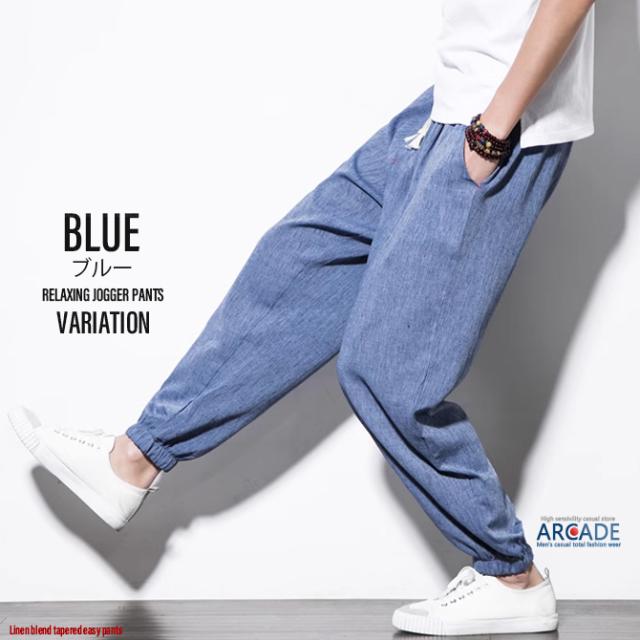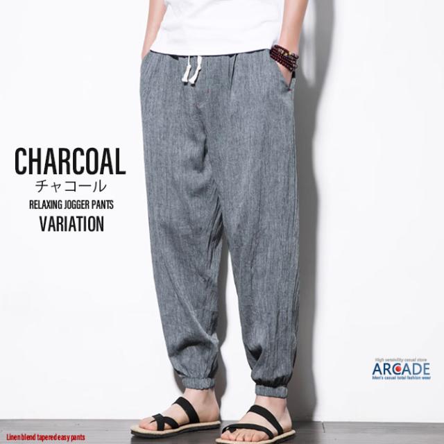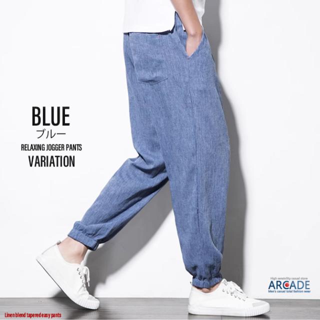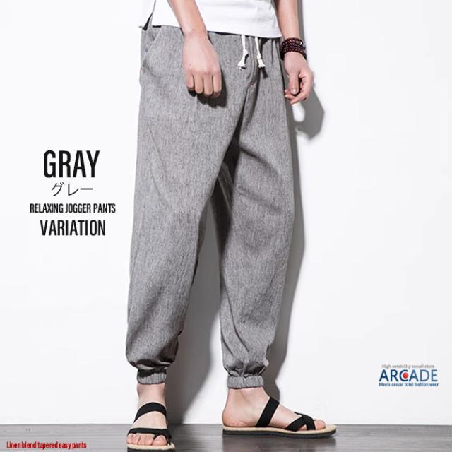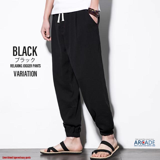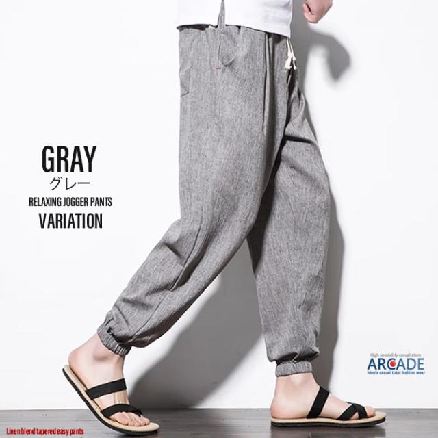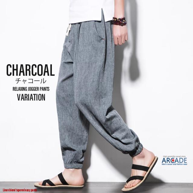 綿麻 リラックスジョガーパンツ メンズ リネンパンツ 夏 フルレングス 涼感 リラックス パンツ くるぶし丈 ルームウェア