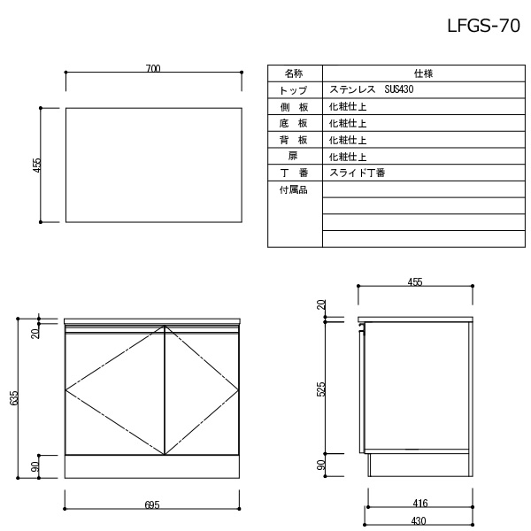 サイズ:W700mm×D455mm×H635mm