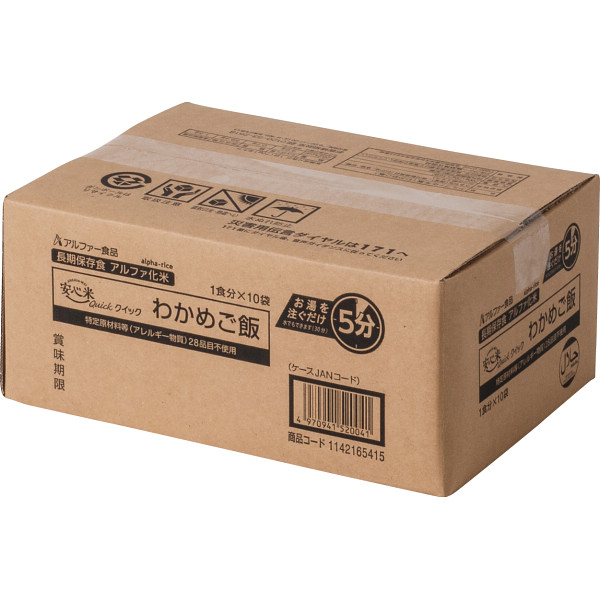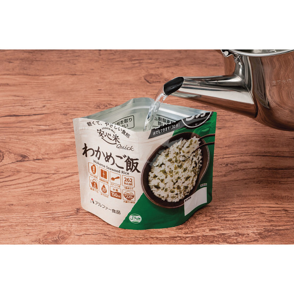 安心米クイックわかめご飯 10食セット 非常食 保存食 防災食 備蓄 食料 アルファ米 米 ご飯 わかめご飯 レトルト インスタント 簡単調理 非常食セット 米加工品 お米 5年保存 アレルギー対応 28品目不使用