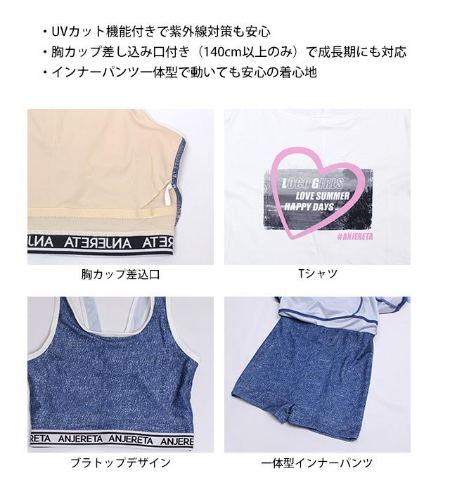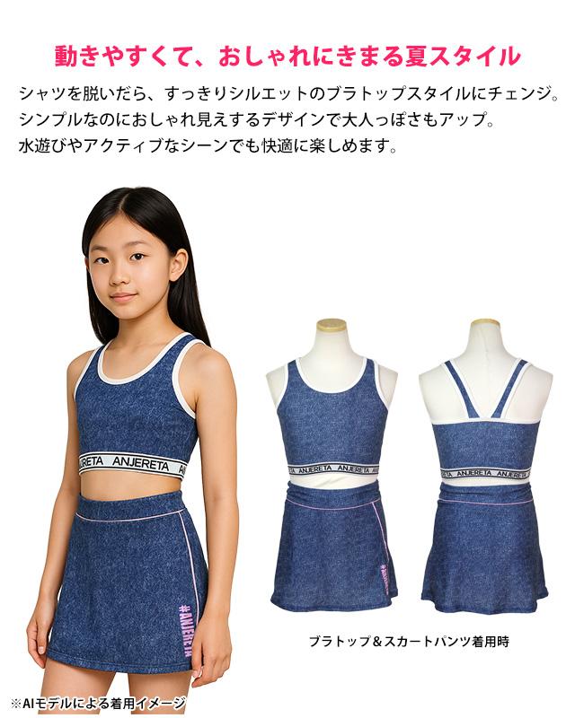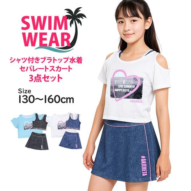 水着 女の子 子供 キッズ ジュニア セパレート水着 ブラトップ Tシャツ付き スカートタイプ 3点セット 130cm 140cm 150cm 160cm