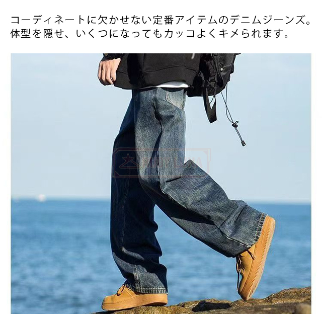 最安挑戦 春新作 送料無料 新作 デニムパンツ メンズ ジーンズ ワイド デニムパンツ ストレートデニムパンツ ゆったり デニムボトムス カジュアル ジーパン gパン ロングパンツ ウォッシュジーンズ 春 夏 秋 冬