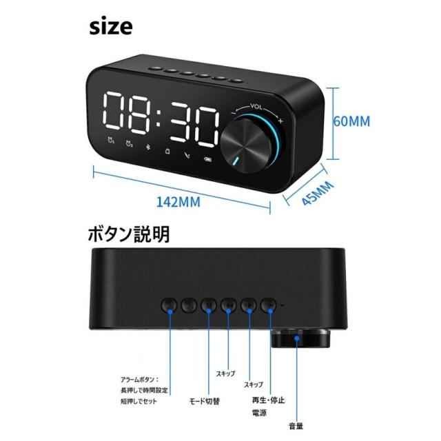 Bluetooth スピーカー 高音質 目覚まし時計 デジタル 寝室 ナイトライト MP3プレーヤ スマホ ステレオ