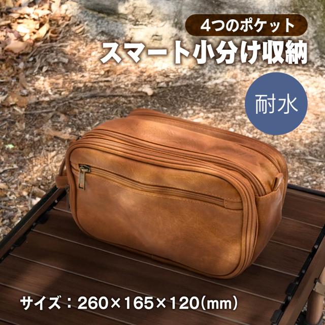 waku fimac クッカー 収納バック 合皮 食器 収納 キャンプ アウトドア 野外 登山 ポーチ 旅行 軽量 防水 ソロ ブラウン