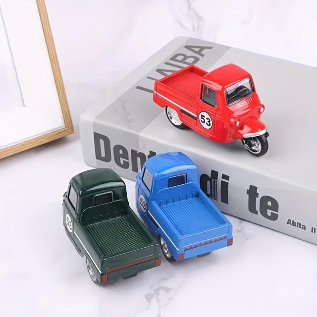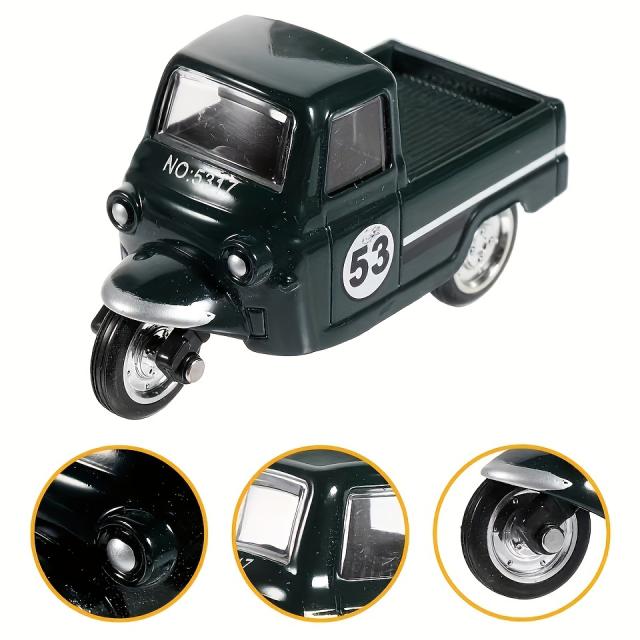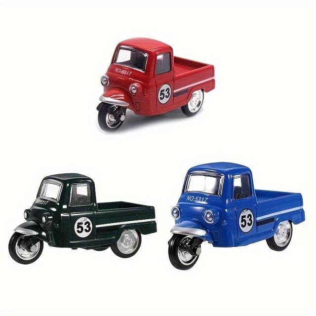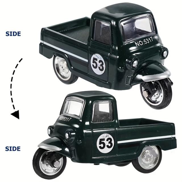 ミニ合金プルバックトライク、レトロ三輪車模型、開閉ドア付き、コレクターズアイテム