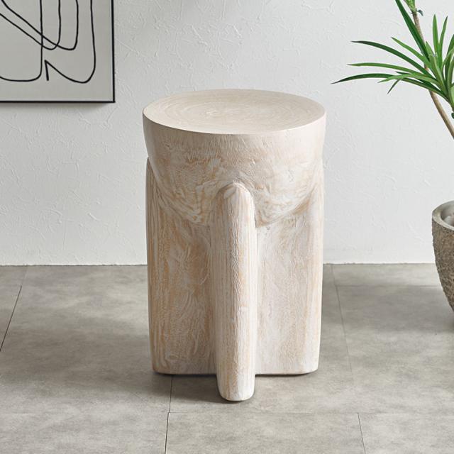 玄関やバスルームなどで使用するスツールとしてはもちろん、ソファーサイドやベッドサイドに置くサイドテーブルや、観葉植物を飾る花台としてもおすすめです。アートのようなデザインとホワイトウォッシュ加工の爽やかな色合いが、白や青を基調としたコースタルスタイルの空間に溶け込み、海を感じる心地よい暮らしをお楽しみいただけます。