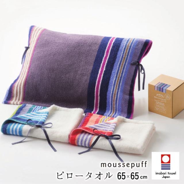 日本製 ムースパフ 今治 ピロータオル 65×65cm 西川 まくらカバー 枕カバー ピローケース ストライプ M便1 TT95353014