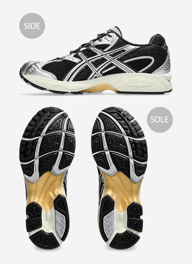 足元の骨格に対応したデザインで、ミッドソールには二層構造のEVAフォーム、GELテクノロジーが搭載。
