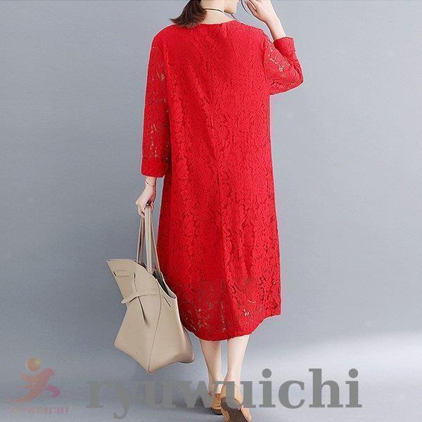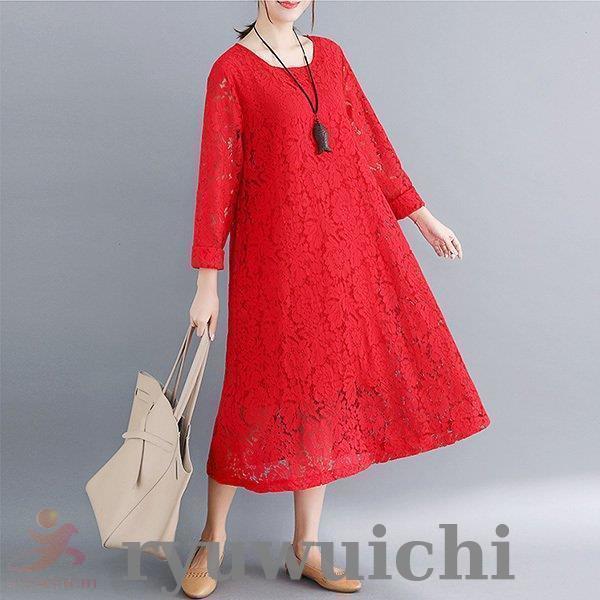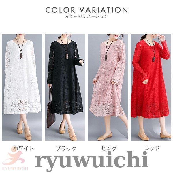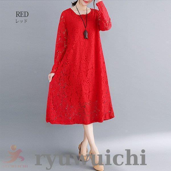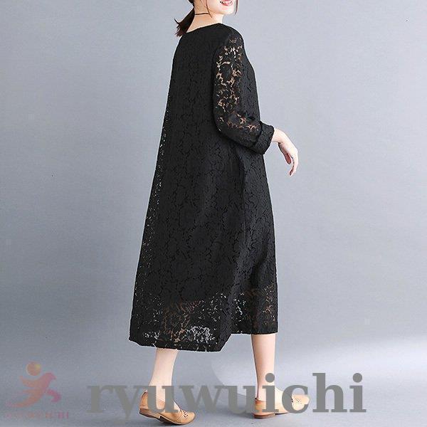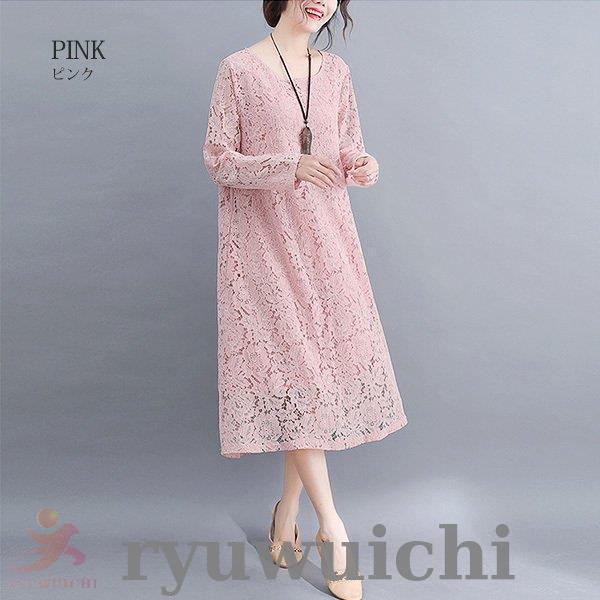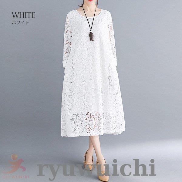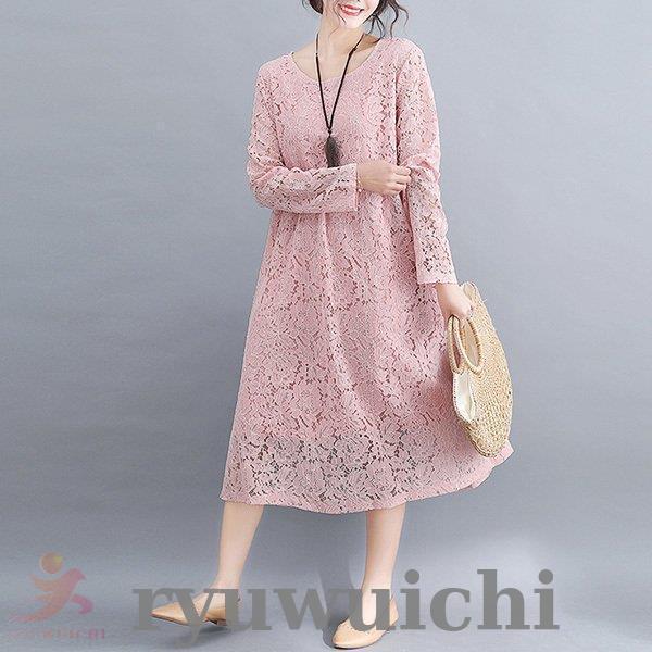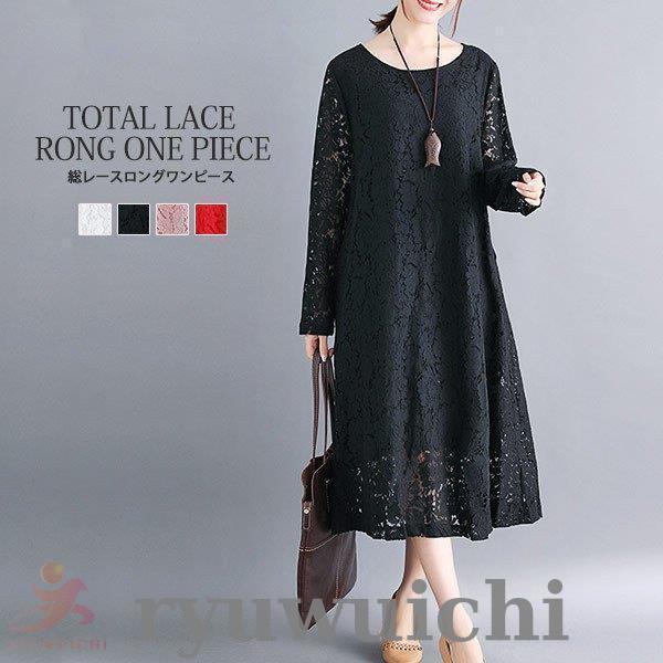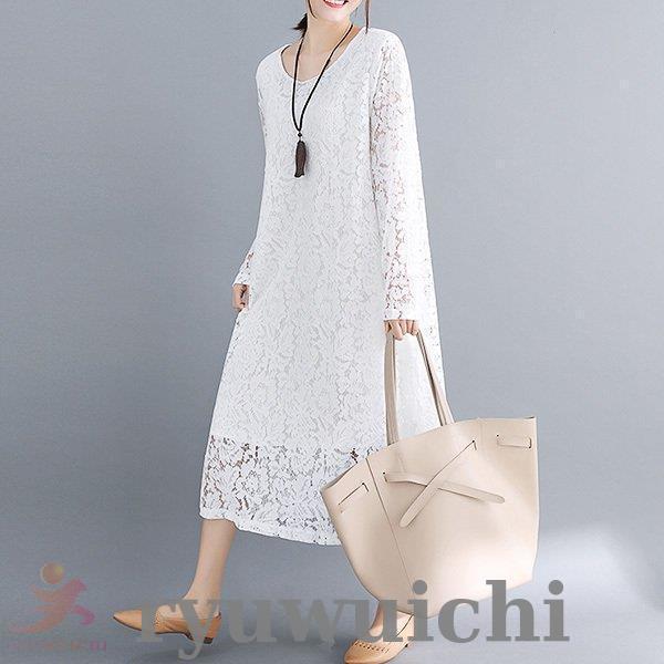 ワンピース 総レース ドレス ロング丈 長袖 上品 春 夏