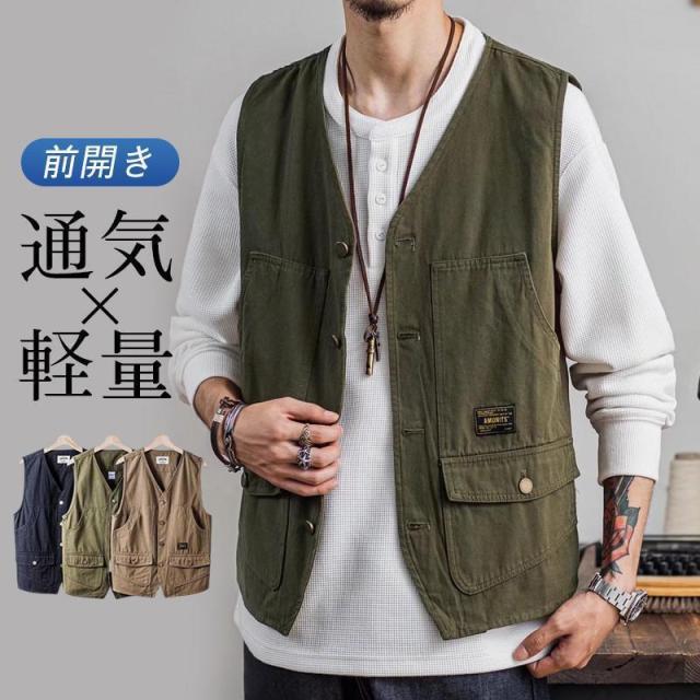 ベスト メンズ 夏 チョッキ サマー 前開き ノースリーブ お釣りベスト 登山 ゴルフ 作業着 農業 仕事 父の日 プレゼント