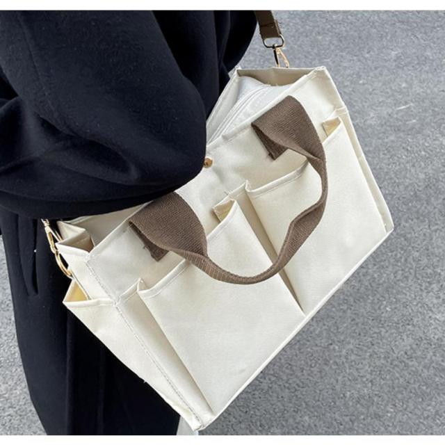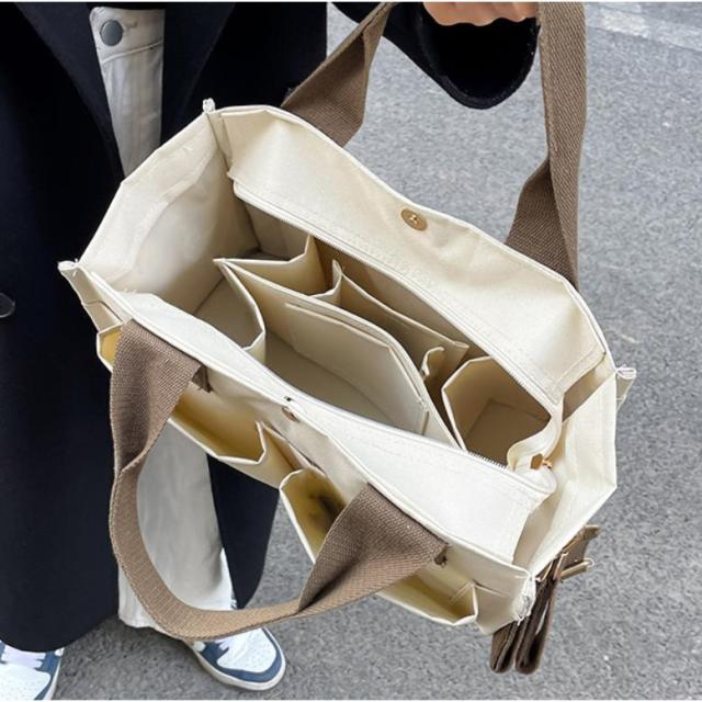 ミニトートトートメンズ おしゃれ 小さめ 仕切り 仕切り付き 仕切りあり 自立する 通勤 サブキャンバス 布 帆布 無地 シンプル