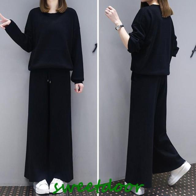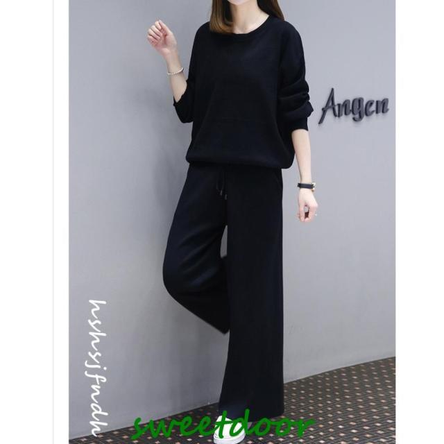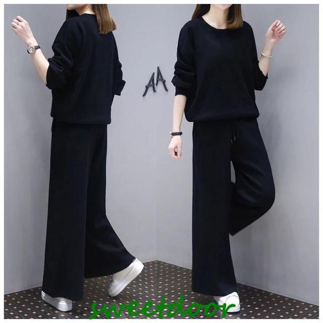 ジャージ 上下セット レディース スポーツウェア 2点セット ジャージセット パーカー ワイドパンツ パンツ 大きいサイズ 長袖 丸首 秋 冬 通勤 細身 無地