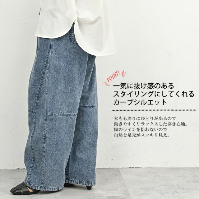 高身長さんにもおすすめの イージーバレルデニムパンツ。 脚のラインを拾わないので 自然と足元がスッキリ見え。 一気に抜け感のあるスタイリングにしてくれる カーブシルエットのボトムスです。 |