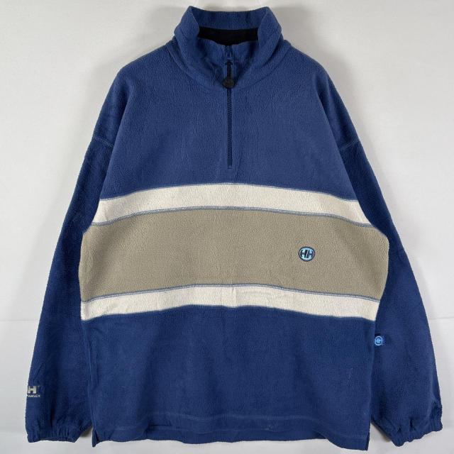 古着 ヘリーハンセン HELLY HANSEN フリーストレーナー ハーフジップ プルオーバー ワンポイントロゴ マルチカラー M ブルー系 メンズ