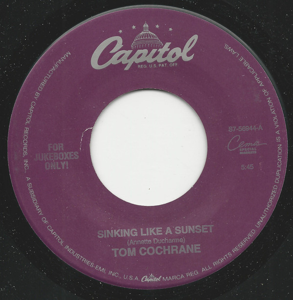 【中古】米7” Tom Cochrane Sinking Like A Sunset S756944 Capitol Records /00080