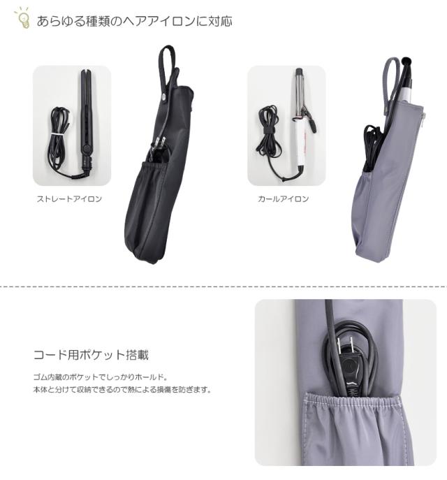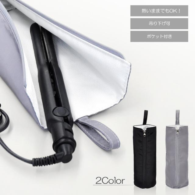 ヘアアイロン ケース 耐熱 カバー ポーチ おしゃれ かわいい 熱いまま ポケット付き カールアイロン ストレートアイロン 吊り下げ コテ 携帯 旅行 出張