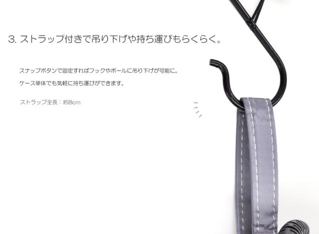 持ち運びや収納に便利なストラップ付き。