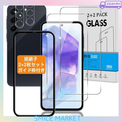 【2+2枚セット ガイド枠付き】 対応 GALAXY A55 5G SC-53E / SCG27 ガラスフィルム +カメラフィルム 【日本旭硝子 硬度9H】 用 ギャラクシー A55 5G フィルム 強化ガラス 液晶 保護フィルム 3D TOUCH対応