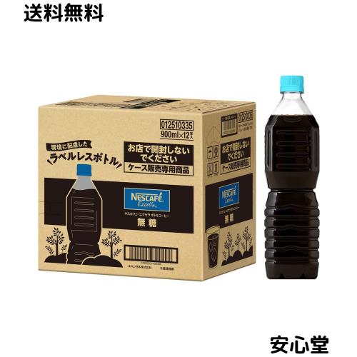 ネスカフェ ボトルコーヒー エクセラ 無糖 ラベルレス 900ml×12本,アイスコーヒー,ペットボトル