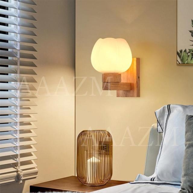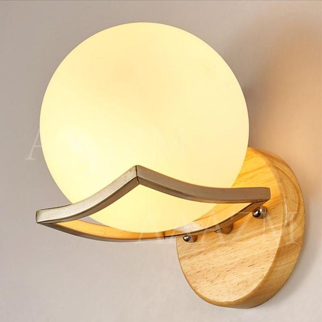 ブラケットライト おしゃれ 北欧 LED対応 壁付け照明器具 丸型 ガラス 木製 洗面所 階段 玄関 ウォールランプ 寝室 和室 壁掛け 木目 和風 ベッドサイドランプ