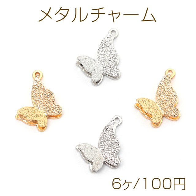 メタルチャーム 蝶モチーフ 立体蝶チャーム バタフライチャーム ピアス イヤリング制作におすすめ 約11×16mm (6ヶ)