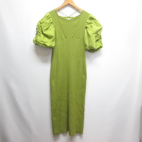 【中古】セルフォード CELFORD 美品 ボリューム袖 ニット タイト ワンピース 36 黄緑 グリーン 五分袖 ロング