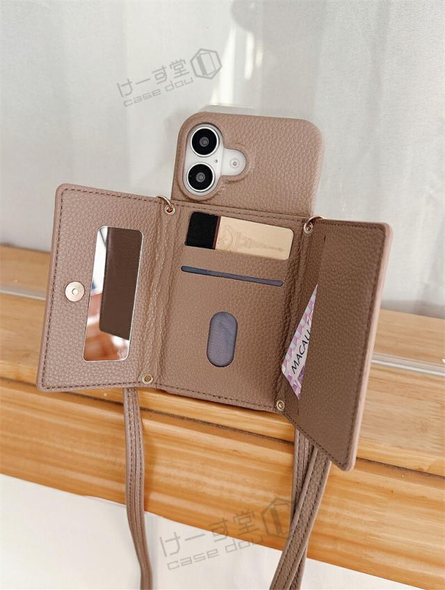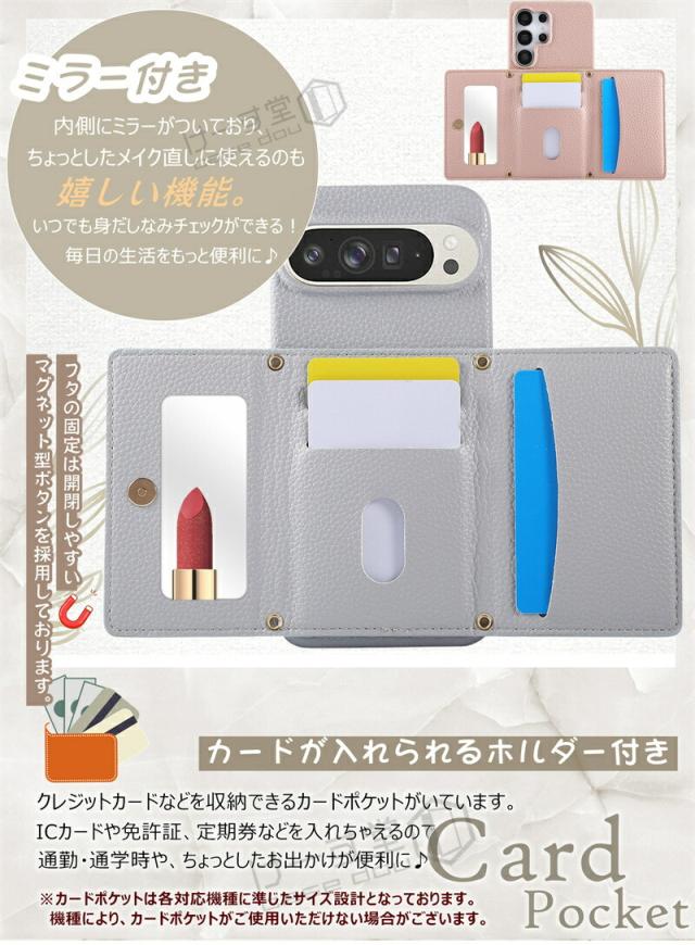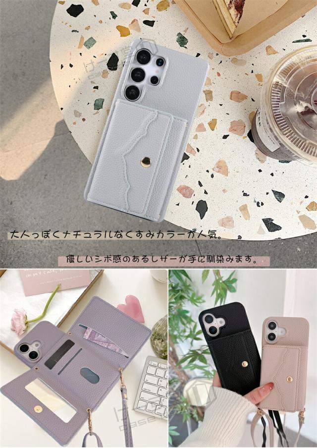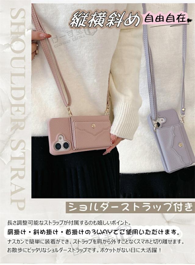 ショルダーストラップ&ミラー&カード収納ポケット付き、大人気のスマホショルダーケースが登場!