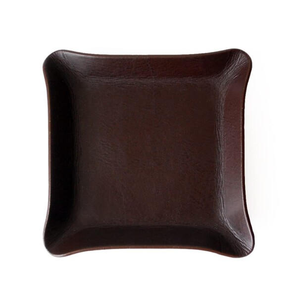 お手入れいらずの リサイクルレザー スクエア コイントレイ (チョコ)