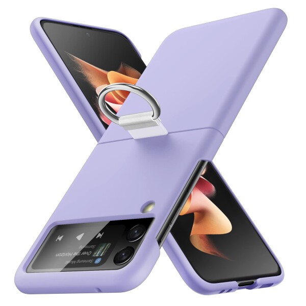 WACJOSD 対応 Galaxy Z Flip3 5G 用の ケース リング 耐衝撃 PC 薄型 ケース おしゃれ カメラ保護 軽量SC-54B / SCG12 用 カバー らさら肌触り フィッ 着脱簡単 指紋防止 軽量 薄型 擦り傷防止 紫C90-zfli