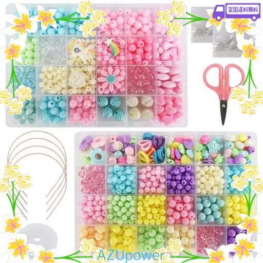 ZAIDEA ビーズ アクセサリー キット 工具セット 女の子 子供 大容量 ブレスレット カラフル 手作り カチューシャ付き ユニコーン