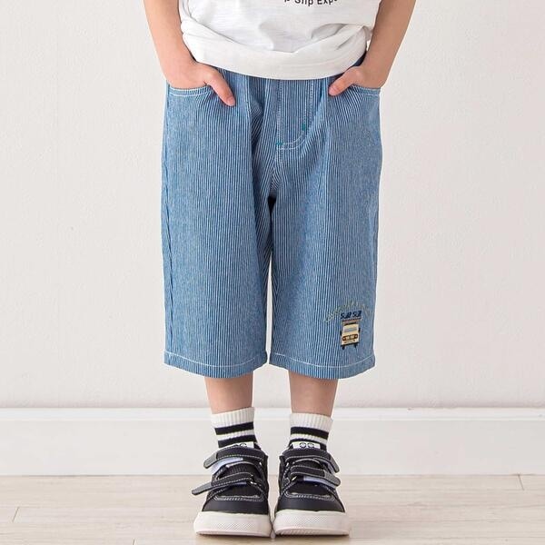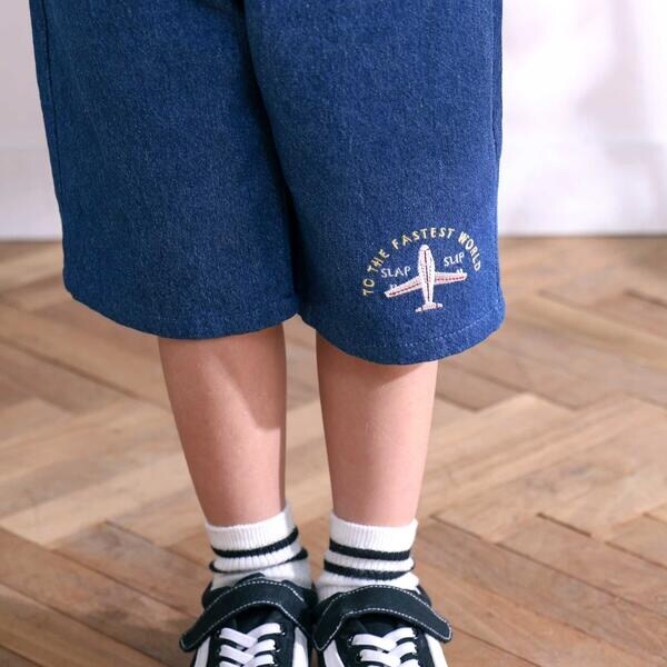 スラップスリップ(SLAP SLIP)/飛行機くるま裾刺しゅうデニムヒッコリー5.5分丈パンツ(80~130cm)