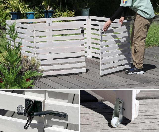 好きな時に出してしまえる折り畳めるウッドフェンス横ボーダー 1枚組です。お好きな場所に置くだけで簡単に設置ができ、別売りのゲートも付けることができる多機能フェンスです。ごちゃついた場所の目隠しやカラーコーンの代わりに置けば、空間をお洒落に仕切れます。
