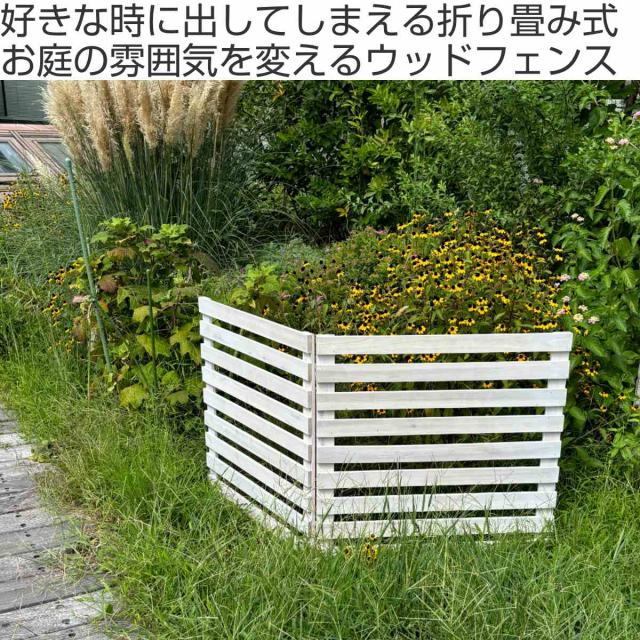 フェンス 木製 折り畳めるウッドフェンス 142×71cm 横ボーダー ( ガーデンフェンス 柵 折りたたみ 2連 園芸 エクステリア 雑貨 ウッドフェンス 花壇 庭 ベランダ バルコニー ガーデニング 木製ガーデンフェンス 蝶番 インテリア )