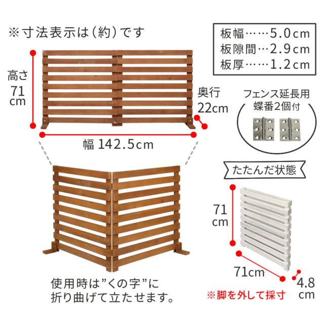※こちらは、折り畳めるウッドフェンス142×71cm横ボーダー 1枚組の販売ページです。
