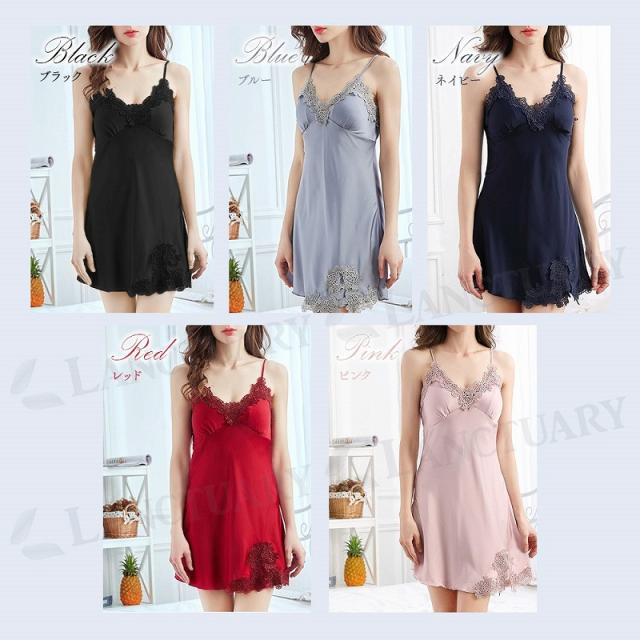 ランジェリー サテン セクシーランジェリー ベビードール スリップ ナイトウェア ルームウェア レディース インナー 下着 シルク風 光沢 上品 エレガント 繊細