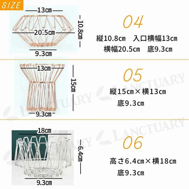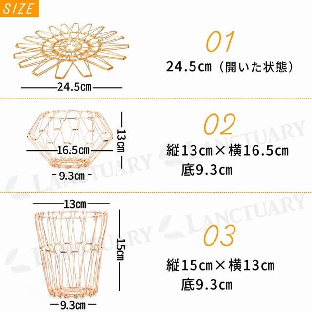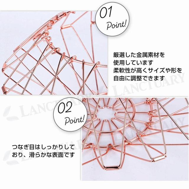 | 商品の説明 | スペースに合わせて変幻自在。 用途に合わせて自由自在。マルチな収納アイテム。 使わない時はコンパクトに折りたたみできます。 持ち運びもラクラク。どこへでも連れて行けます。 丈夫で長持ち、使いやすさも抜群! 【用途に合わせて変形】形を変えられる多機能な収納バスケットです。果物や文房具の収納はもちろん、フラワーバスケットや水切りラックとしても使えます。デザイン性も高く、様々な用途で活躍します。 【シンプルでおしゃれ】インテリアに馴染むシンプルなワイヤーデザイン。スイーツや小物の収納、ティータイムのプレート、フルーツ盛り、インテリア、水切りラックなどアイデア次第で様々な用途に使えます。おしゃれなデザインで、普段のフルーツを豪華に見せたり、卓上をおしゃれに演出したりできます。 【インテリアに馴染みやすいカラー】エレガントで発色の良いメタリックなカラーバリエーションです. 厳選したステンレス素材を使用しています。つなぎ目はしっかりしており、滑らかな表面です。通気性が良く、錆びにくい ステンレス製金属です。程よい容量で、様々に変形し色んな場所におすすめです。 |