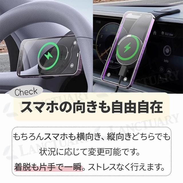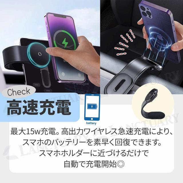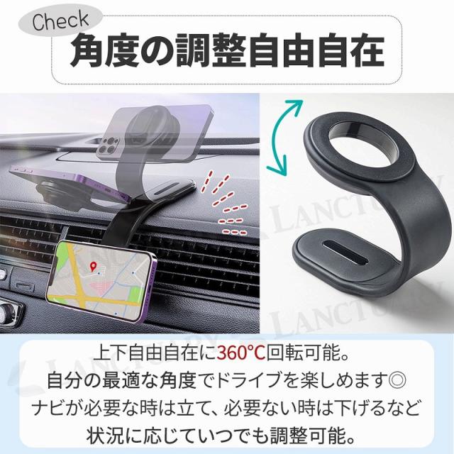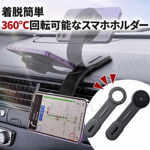 車載スマホホルダー 360度回転 充電器 高速充電 耐久性 ワイヤレス充電器 ダッシュボード インパネ センターコンソール ブラック MagSafe スマホスタンド
