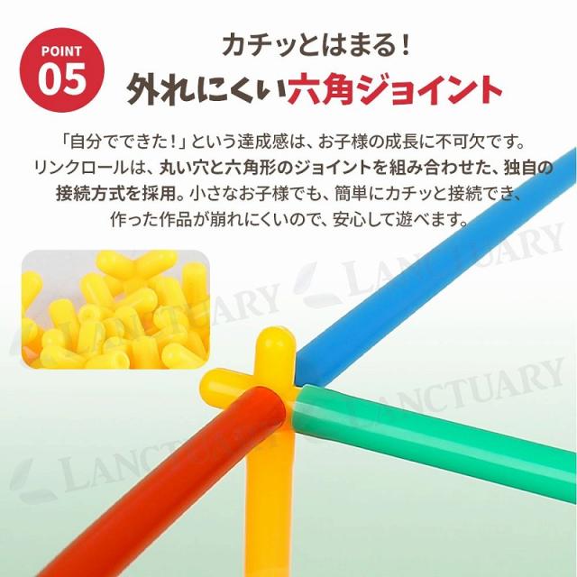 リンクロールは、6歳以上のお子様向けの知育玩具です。カラフルなストローと、それを繋げる管を使って、自由に形を作って遊べます。