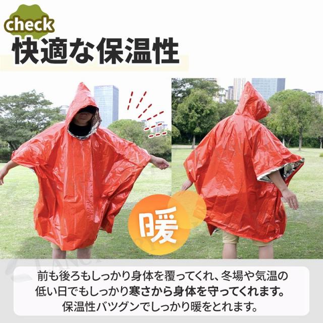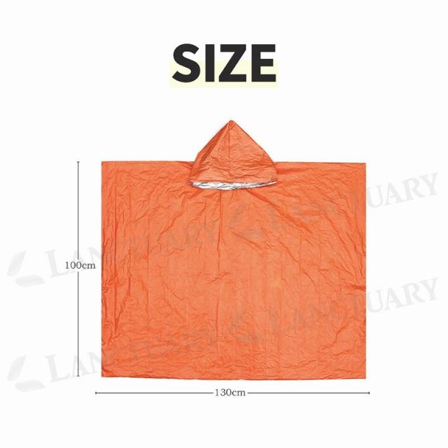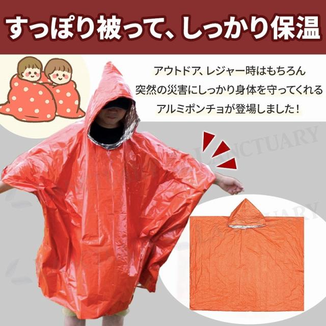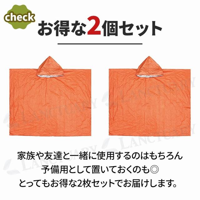 静音ポンチョ ポンチョ レインコート アルミ 保温 寒さ対策 被る 耐久性 破れない 防災用品 非常用 折りたたみ コンパクト オレンジ 2個セット ユニセックス