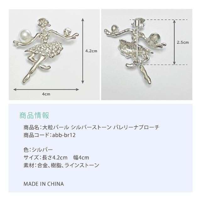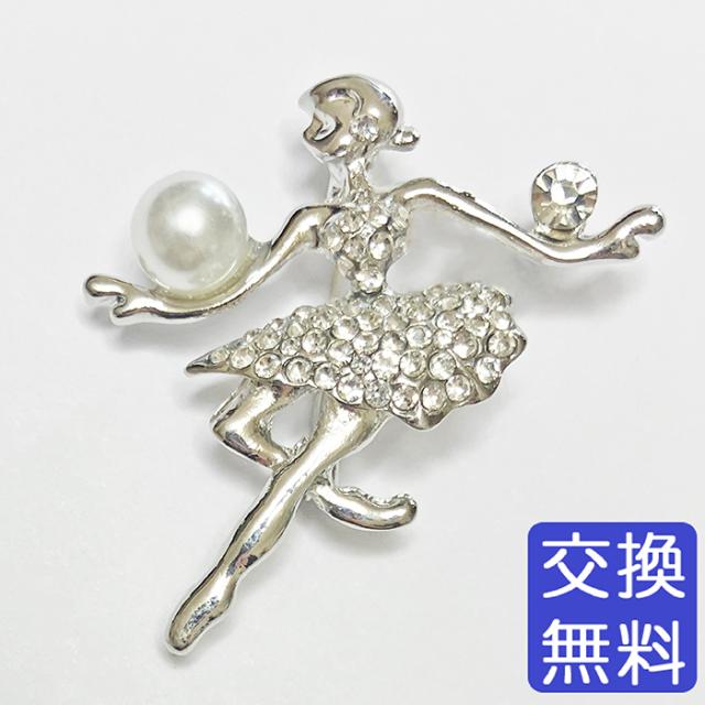 バレエ 雑貨 大粒パール シルバーストーン バレリーナブローチ アクセサリー 小物 プレゼント ギフト 贈り物 発表会 誕生日 記念品 レッスン クリアストーン パール ビジュー キラキラ おしゃれ 可愛い