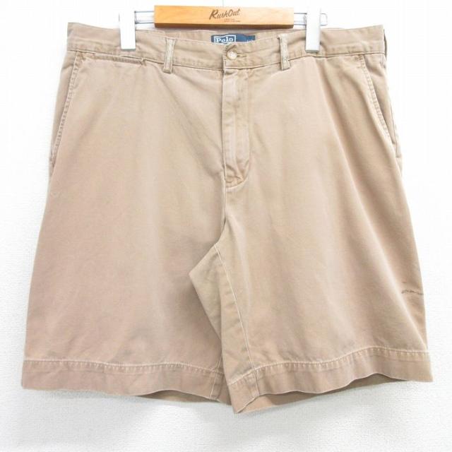【商品名】 W34★古着 ラルフローレン ブランド ショート チノ パンツ チノパン ショーツ メンズ 90年代 90s コットン 薄ベージュ【spe】