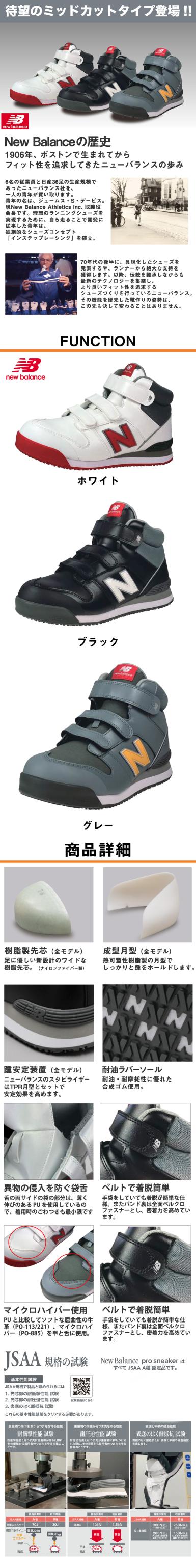 安全靴 ハイカット ニューバランス New Balance New Balance ニューバランス ポーツマス PO-113、PO-221、PO-885 マジックテープ JSAA規格 プロテクティブスニーカー