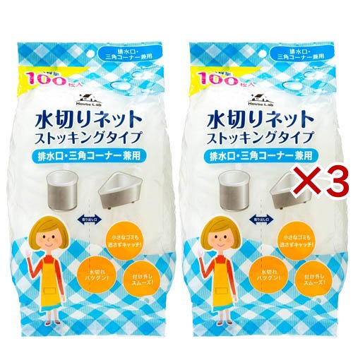 アドグッド ハウスラボ ストッキング水切りネット兼用(2個パック×3セット(1個100枚入))[水切りネット 三角コーナー]