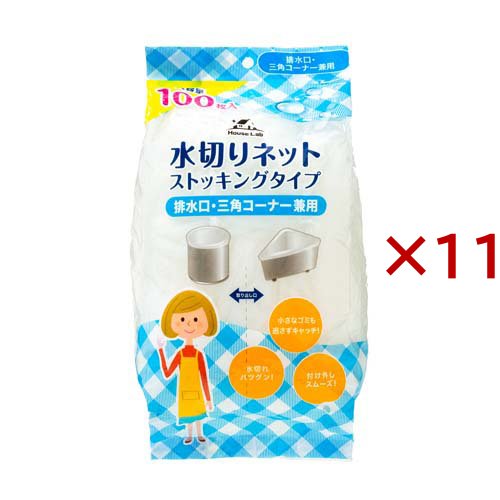 ハウスラボ ストッキング水切りネット 排水口・三角コーナー兼用 大容量(100枚入×11セット)[水切りネット 三角コーナー]