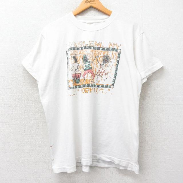 古着 半袖 ビンテージ Tシャツ メンズ 90年代 90s HARLEM レゲエ クルーネック 白 ホワイト XLサイズ 中古 中古 古着