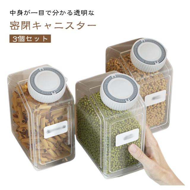 プラスチック 密閉保存容器 冷蔵庫収納 3個セット 調味料入れ 小麦粉 入れ物 日付表示 保管 キャニスター 砂糖 保存瓶 1.3L 1.8L 引き出し収納 密閉保存容器 キッチン