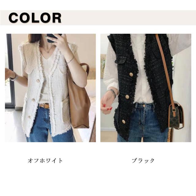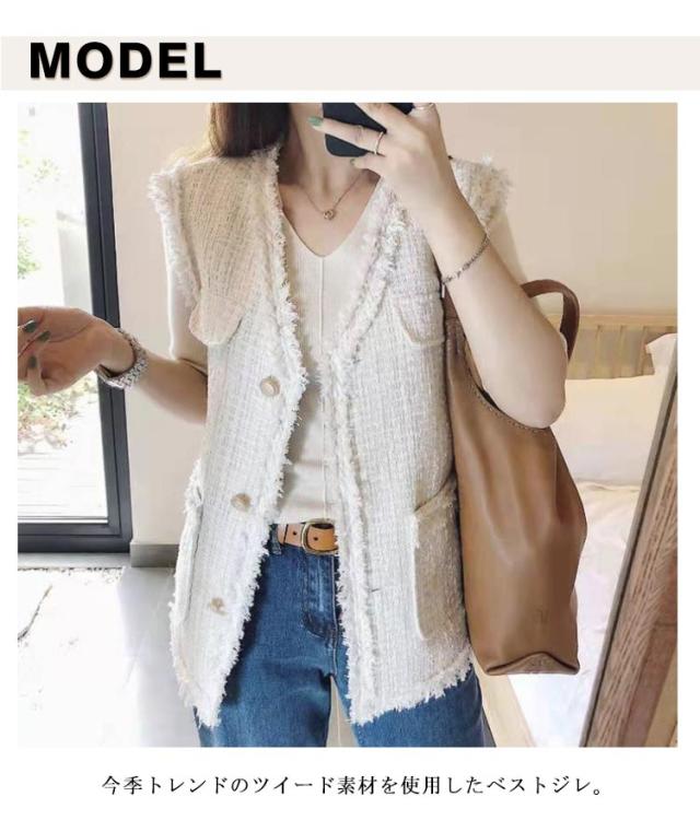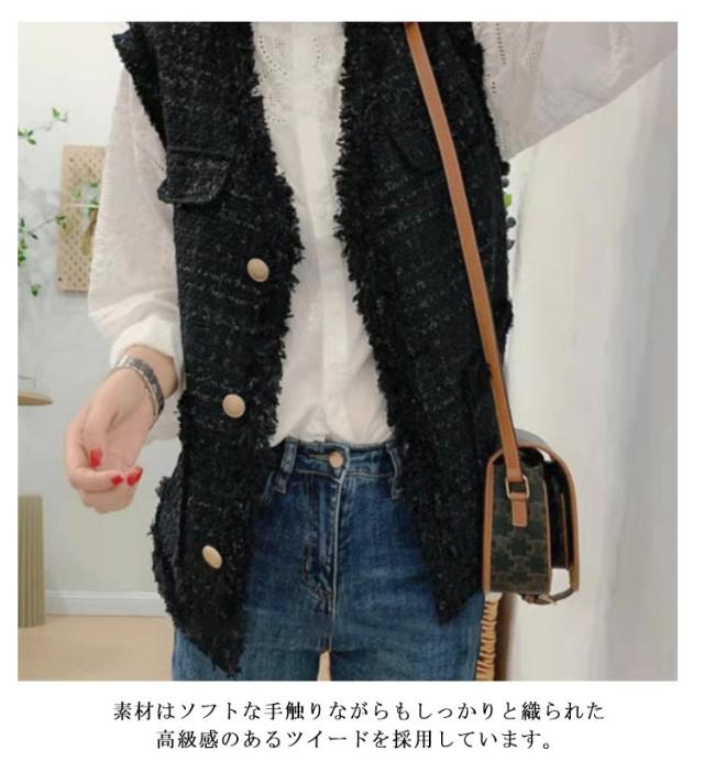 ツイードベス ツイードジャケット おしゃれ 韓国ファッション ジレ 秋 Vネック ツイード ツイードジレ 春夏秋 レディース ツイード 春 大人 母 韓国風 通勤 卒業式 かわいい 入園式 服装 入学式 上品 エレガント 高見え