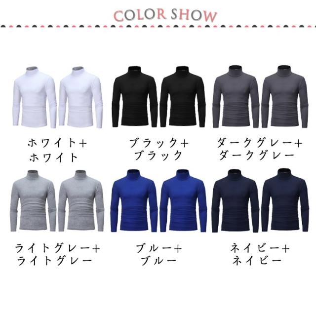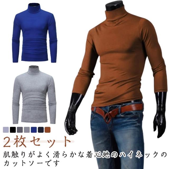 無地 メンズ 【2枚セット】 【2枚セット】 長袖tシャツ ロンt スリム ハイネック インナーシャツ ロングtシャツ ロンティー tシャツ ゴルフ ビジネス 紳士服 カジュアル ハイネックシャツ スポーツウェア