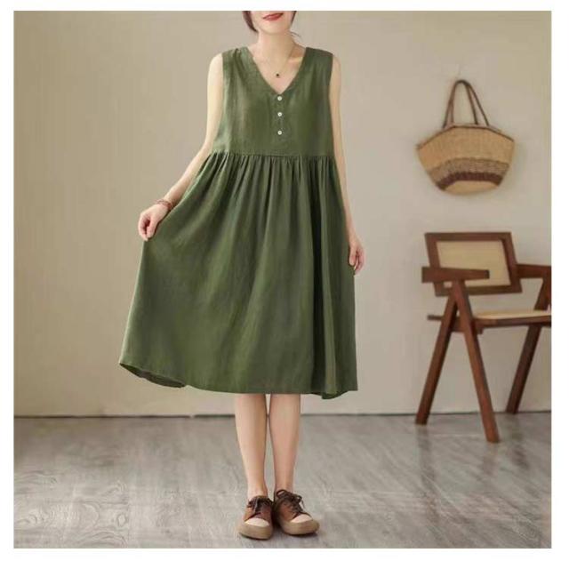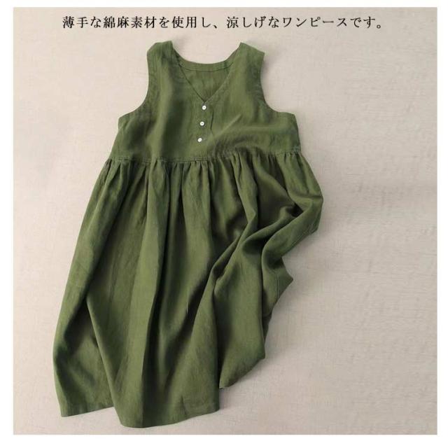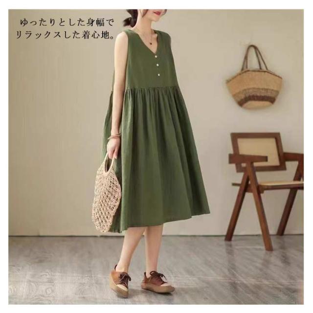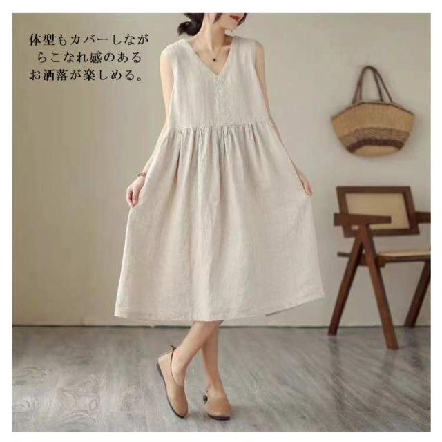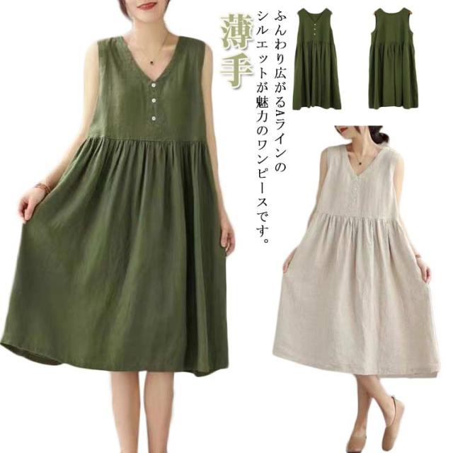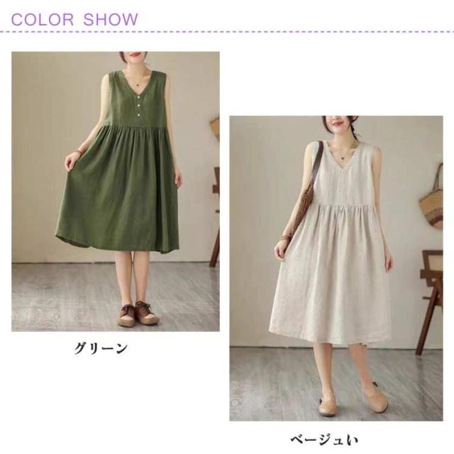 夏 レディース 春 ワンピース Aライン リネン 袖なし フレアワンピース シンプル 夏 リネンワンピース 通勤 涼しい タンクトップ ノースリーブ 薄手 大きいサイズ 綿麻 無地 ロングワンピース ワンピ ワンピース 大人 カジュアル 体型カバー
